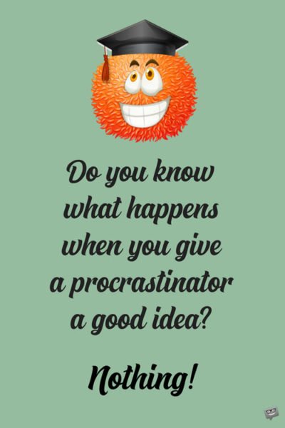 Teachers can help their students overcome this unhelpful habit early so that. Inspirational quotes help us to live our lives passionately. The greatest thief this world has ever produced is procrastination, and he. Let these procrastination quotes remind you to use your time wisely. Nothing is so fatiguing as the eternal hanging on of an uncompleted task.
